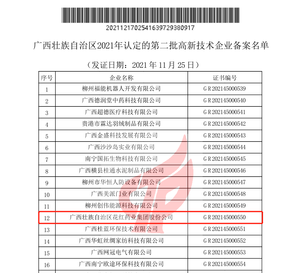2021/12:12月22日,花紅藥業(yè)再獲國家“高新技術(shù)企業(yè)”稱號。